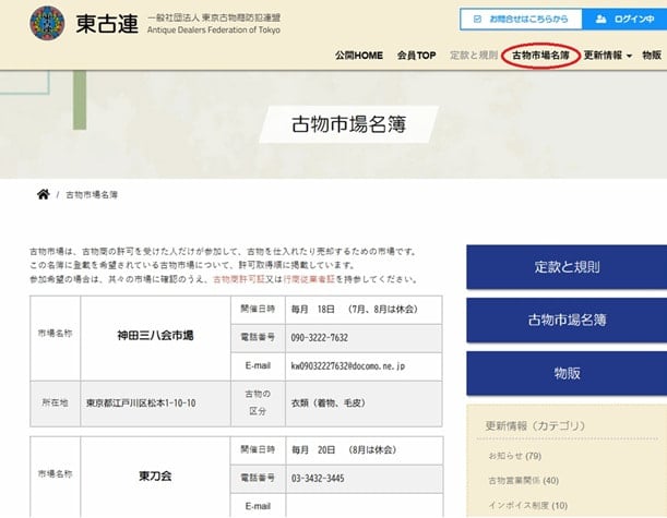 その結果、登載を希望した古物市場33か所をこの名簿に登載し、東古連ホームページの会員専用ページに掲載(許可取得順)することにしました。【会員登録した上でご参照ください。】
